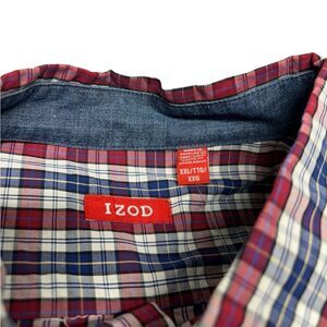 Izod Red Blue Plaid Button Down Long Sleeve Shirt Casual XXL