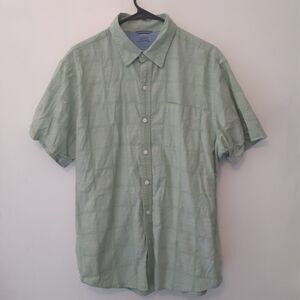 Izod Saltwater Adult Mens L Green 100% Cotton Short Sleeve Button Up Shirt