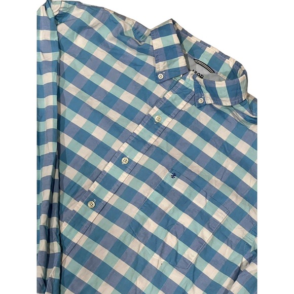 Izod Saltwater Blue Box Button-up, XL, #496-S