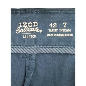 Izod Saltwater Men's 7'' Twill Stretch Shorts Size 42 Navy Blue Chino Summer