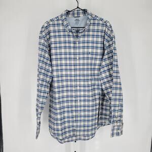 Izod Saltwater Mens Sz XL Long Sleeve Button Up Shirt Blue Yellow Plaid