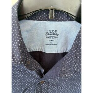 Izod Saltwater Men’s XL Navy w/White Dots Slim Fit Long Sleeve Relaxed Fit Shirt