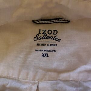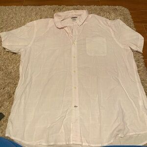 Izod Saltwater Mens XXL White Pink Hue Shirt Short Sleeve Button -down Light