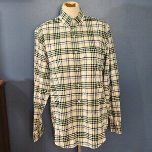 Izod Saltwater Oxford Shirt Relaxed Classics Cotton Blue Green Plaid Made Egypt