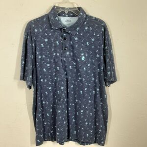 Izod Saltwater Relaxed Classics Mens L Blue Tropical Print Short Sleeve Polo