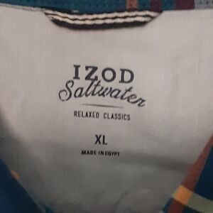 Izod Saltwater Relaxed Classics Mens XL Blue Plaid Long Sleeve Button Up Shirt