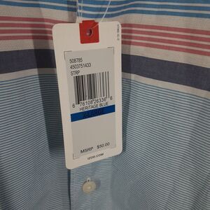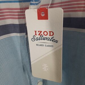 This Izod Saltwater Relaxed Classics men's shirt in size XL is a must-have for any man's wardrobe. The shirt features a classic blue striped pattern that is perfect for casual occasions. The short sleeve button-up shirt is made from high-quality cotton material that is both comfortable and durable. The shirt is brand new with tags and has never been worn.
