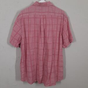 This Izod Saltwater Relaxed Classics Shirt for Men in size XL features a pink plaid pattern that is perfect for a beach or tropical themed outfit. The short-sleeved button-up shirt has a collared neckline and a button-down collar style.