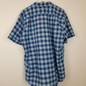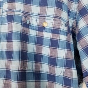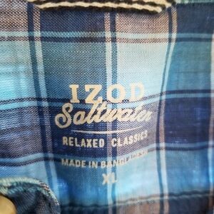 Izod Saltwater relaxed classic blue checked shirt, 2 front pockets, EUC, 100% cotton