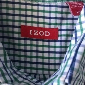 Izod Shirt Long Sleeve Button Down Blue/Green/White Size Large NWOT