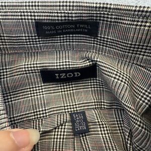Izod Shirt Mens Large Black Houndstooth Button Front Long Sleeve Cotton Twill