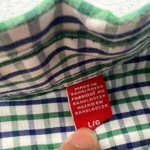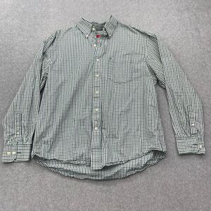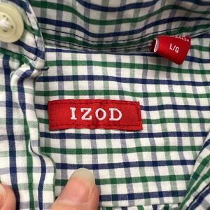 Izod Shirt Mens Large Green Blue Plaid Button Front Preppy Long Sleeve