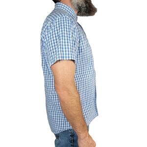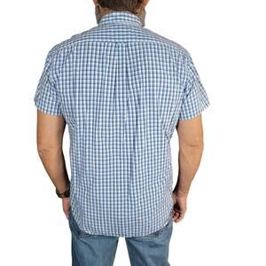 Izod Short Sleeve Button Down Mens Shirt Blue and White Size XL