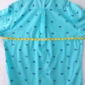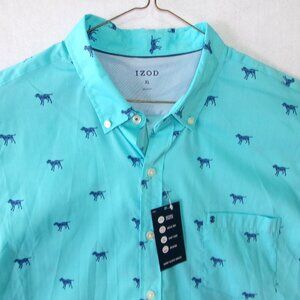 Izod Short Sleeve Button Up Men's XL Shirt Blue with Dog Print NWT