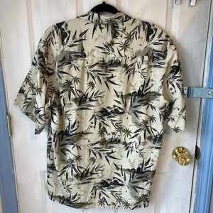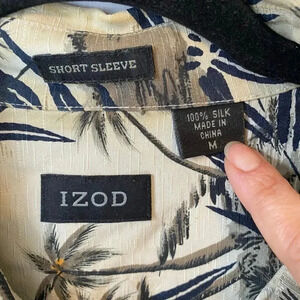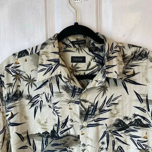 Izod Short Sleeve Silk Button Up Tropical Plant Hawaiian Summer Mens Shirt Sz M. Good condition. L19mar24. Sb
