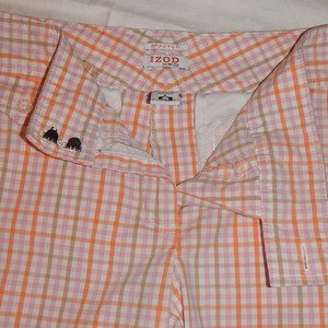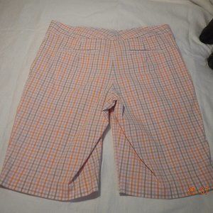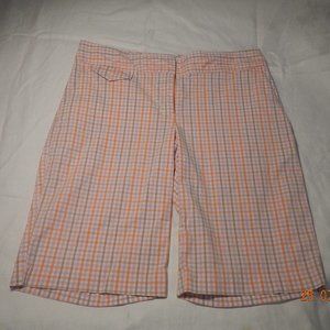 Preppy meets athletic with these cute orange and pink stretchy shorts. Great for golf or a weekend bar-b-q. Up your game...put away those "jorts" and get classy! 97% Cotton, 3% Spandex. VGUC