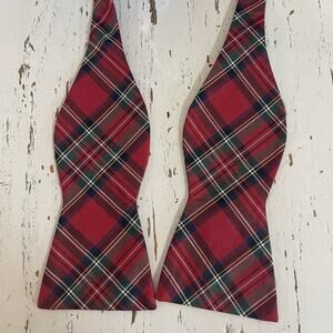 Izod Silk Bow Tie Red Green Tartan Plaid Christmas Self Tie Adjustable Mens