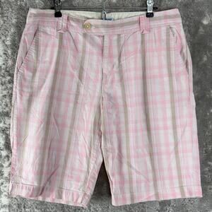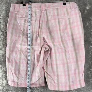 Izod Size 14 Plaid Flat Front Casual Shorts Pink Button Zip Pocket Cotton