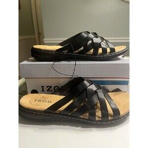 Izod Slaight Strappy Crisscross Strap Slip On Sandals Black Sz 10 NIB