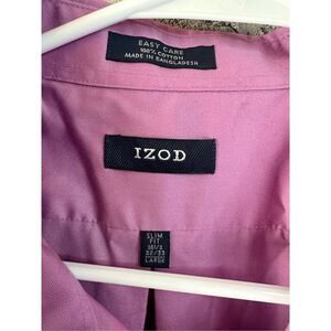 Izod Slim Fit Button Front Long Sleeve Cotton Shirt Pink Size Large