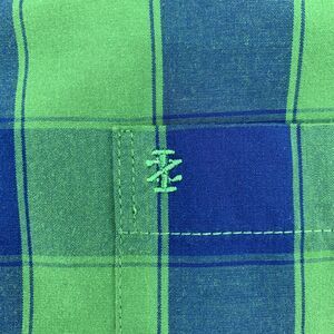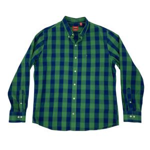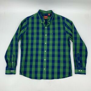 Izod Slim Fit Shirt Men's Size XL Navy Green Long Sleeve Button Down 100% Cotton