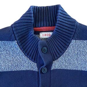 Izod Striped Henley Sweater Blue Rugby Bloke Kurt Cobain 90s Grunge Grandpa-XL