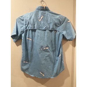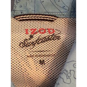 Izod Surfcaster Blue Print Short Sleeve Button Up Shirt. Medium