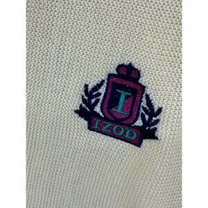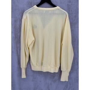 Izod Sweater Mens Large Yellow Pastel Cardigan V-Neck Knit Easter Crest Preppy Grandpacore Academia Long Sleeves Made in USA Old Money Heritage