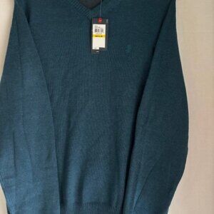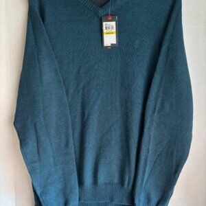 Izod Sweater Mens M Green Blue V-Neck Knit Long Sleeve Pullover Preppy Office