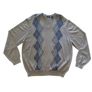 Izod Sweater Men’s Size XXL Tan With Gray Argyle Print