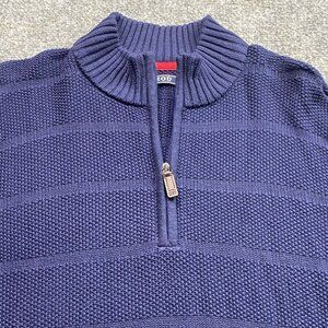 Izod Sweater Mens XL Navy Quarter-Zip Preppy Textured Academic traditional