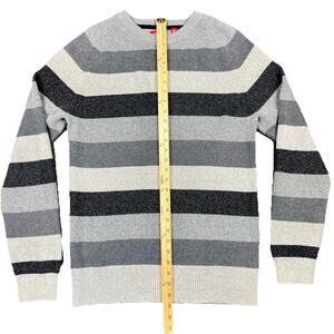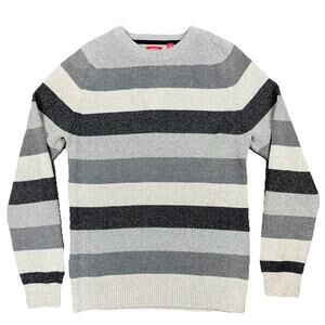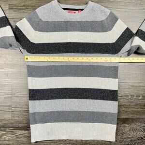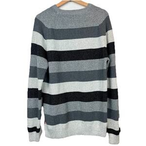 Mens Izod Sweater in an XL is a classic with a black and gray striped knit design. Featuring a crew neck and long sleeves, this heavyweight sweater is perfect for various occasions such as travel, casual wear, and business meetings.The tight-knit fabric offers both stretch and comfort for year-round wear. The sweater also includes subtle logo tag, adding a touch of designer flair to your wardrobe. With a timeless appeal and a hint of coastal or academic themes, this Izod sweater is a versatile and stylish addition.