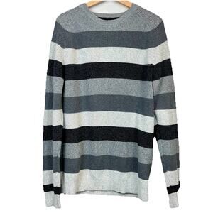 Izod Sweater Mens XL Striped Knit Black Gray Long Sleeve Preppy Academia Coastal