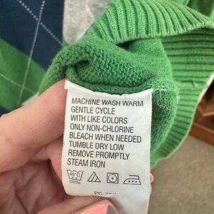 Izod V Neck Argyle Sweater Green Long Sleeve 100% Cotton Size Medium