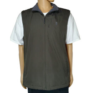 Izod Vest Mens XL Olive Sleeveless Full Zip Fleece Lined Pockets (Small hole)