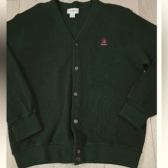 Izod Vintage Men's (Medium) Dark Green Eclectic Grandpa Preppy Cardigan Sweater
