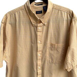 Izod Vintage Mens Short Sleeve Button-Down Preppy Yellow Plaid Cotton Shirt XL