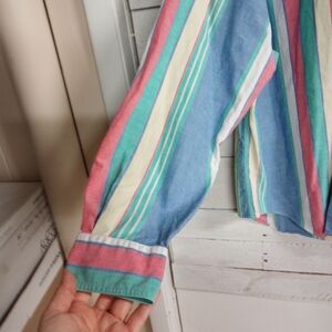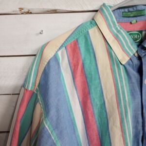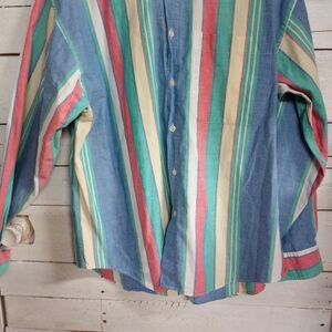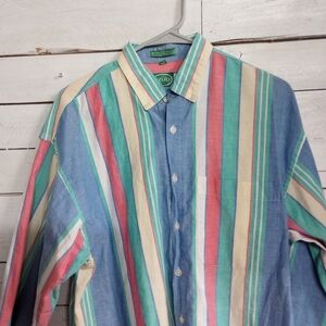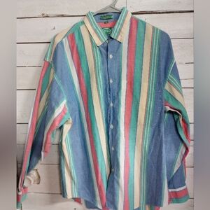 Izod Vintage Striped Multicolor Shirt Mens Size Large Long Sleeve Retro