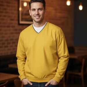 Izod Windbreaker Yellow Golf Pullover Mesh Lined Side Zip Pockets Mens Size XL