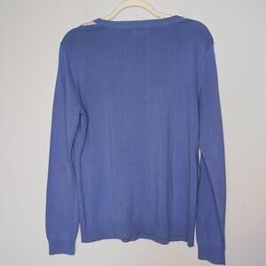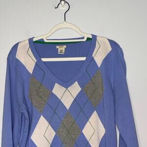 Izod Womens Argyle Sweater Size L Blue White V-Neck Preppy Long Sleeve Cotton