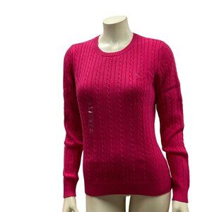 Izod Womens Cable Knit Sweater Large Pink Cotton Crew Neck L NWT