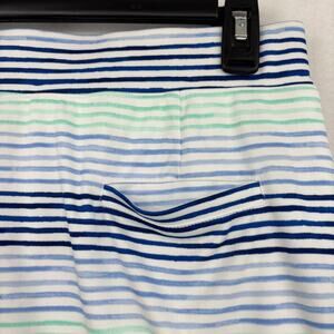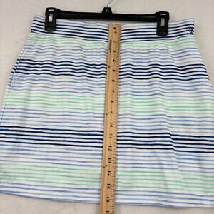 Izod Womens Golf Skort Size M White Blue Multi Stripe Stretch Pull On Pocket