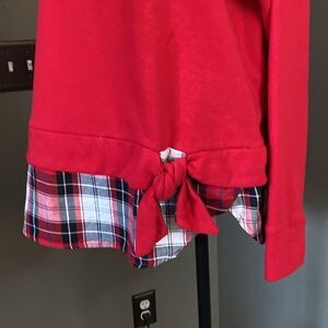 Izod Women’s Long Sleeve Tie Front 2-Fer Sweatshirt Red Plaid