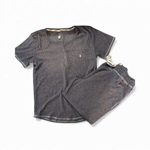 Izod Womens M Gray Pajama Set With Henley Top & Drawstring Pants Ribbed Knit