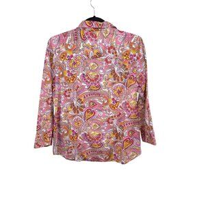 Izod Womens M Paisley Print Shirt Long Sleeve Button Down 4129