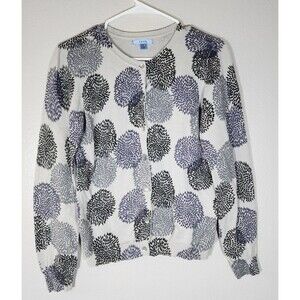 Izod Women’s Medium Button Up Cardigan Knit Sweater Gray & Black Floral Cotton