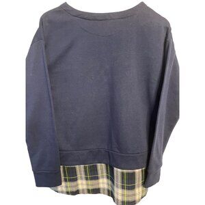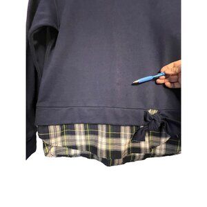 Izod Women's Navy Plaid Accent Sweater With Bow Detail Size M Cotton Blend Comfy