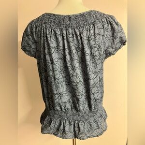 Izod Women’s Peasant Smocked Top/Blouse, Large, Blue, Casual/Summer/Boho