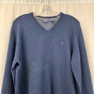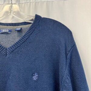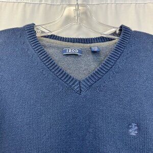 Izod Womens Pullover Sweater Blue Long Sleeve V Neck Tight Knit Boyfriend XL
