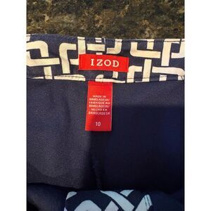 Keywords: Izod, skort, size Standard 10, women's clothing, geometric pattern, multicolor, cotton, spandex, built-in shorts, casual wear, golf, tennis, machine washable, pre-owned.